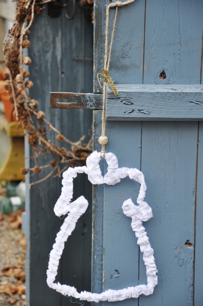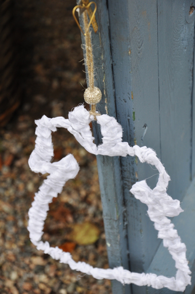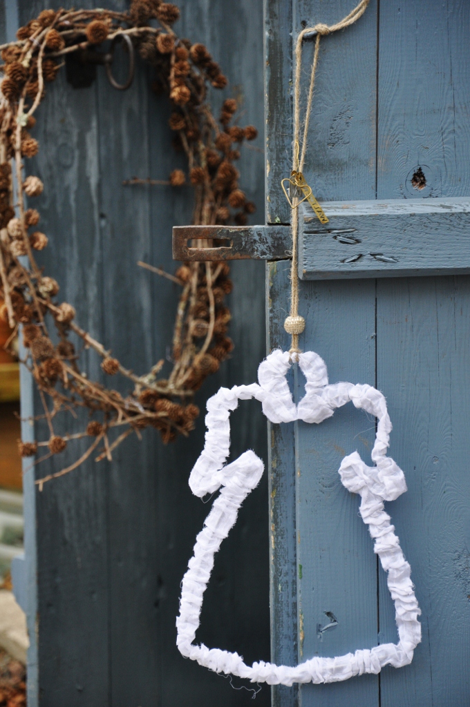 Kommer med ett rep man hänger upp den i och på repet sitter en kula med glaspärlor