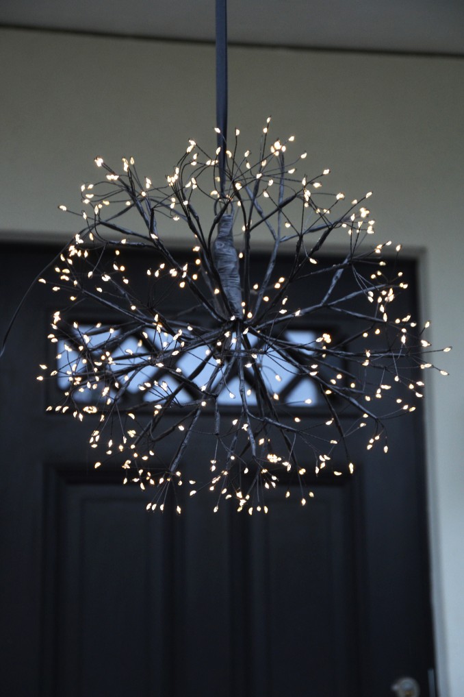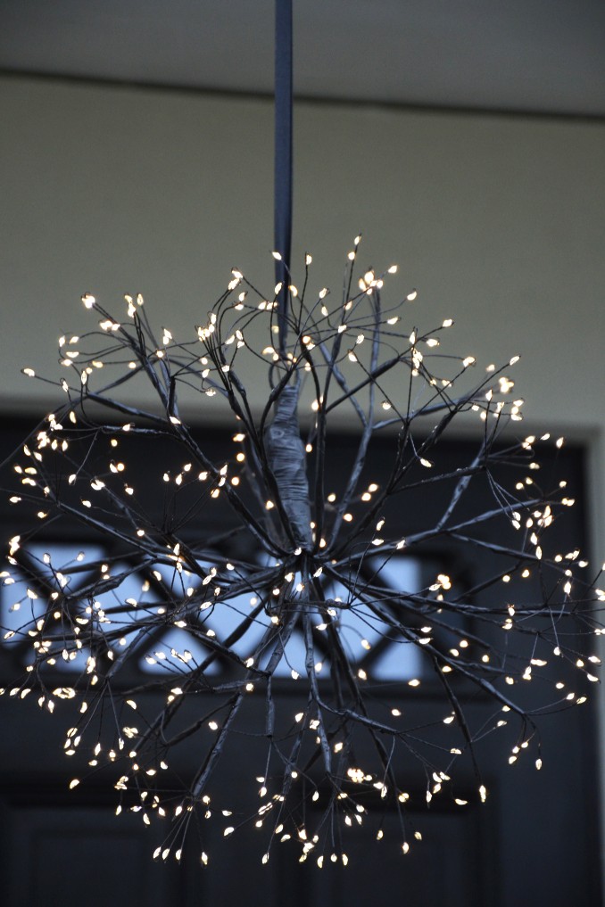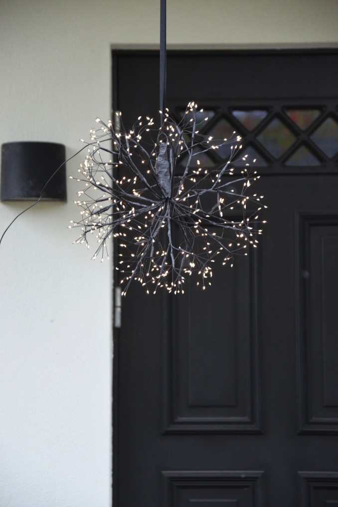 432 varmvita LED fördelade på 24 svarta grenar som justeras till önskad form, ca 48 cm i diameter