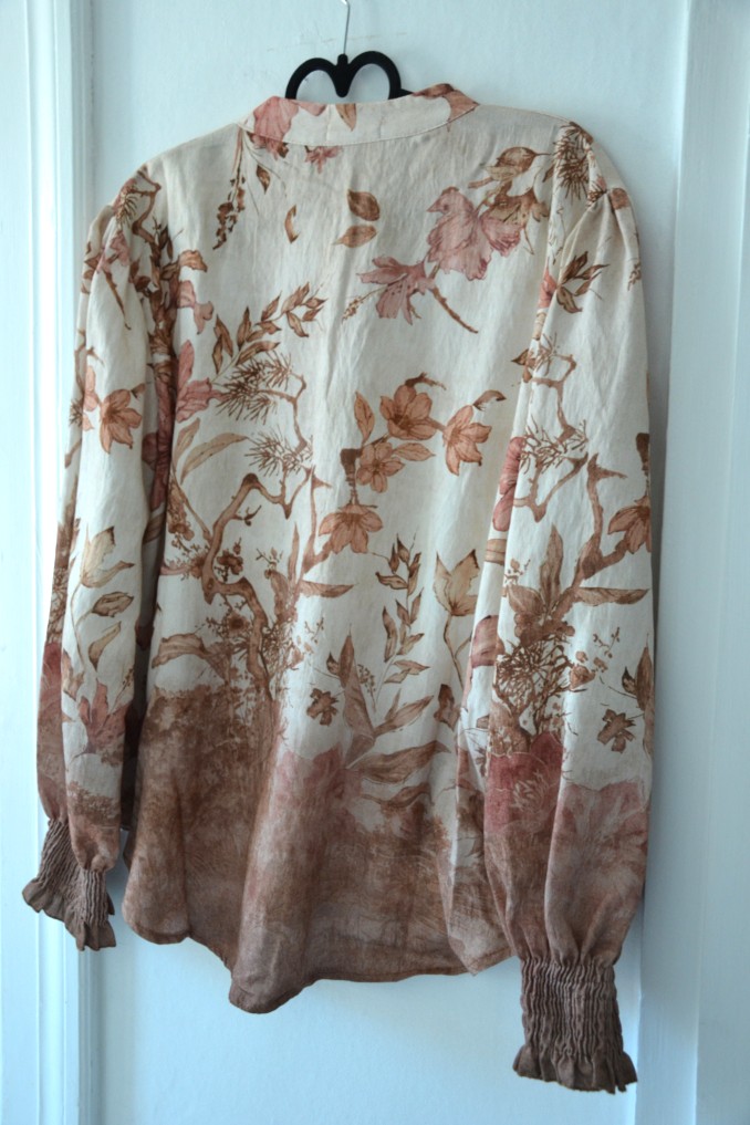 Härlig blommig blus med knappslå och snygg bred smock på ärmarna