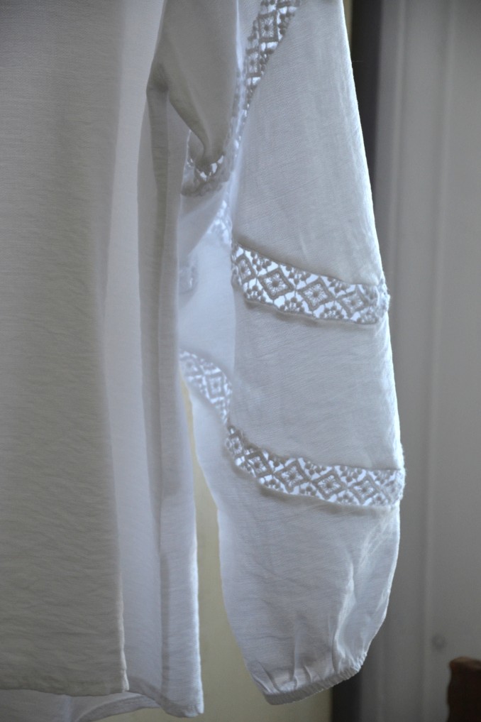 Härlig kritvit blus med vacker infälld brodyr i ärmarna