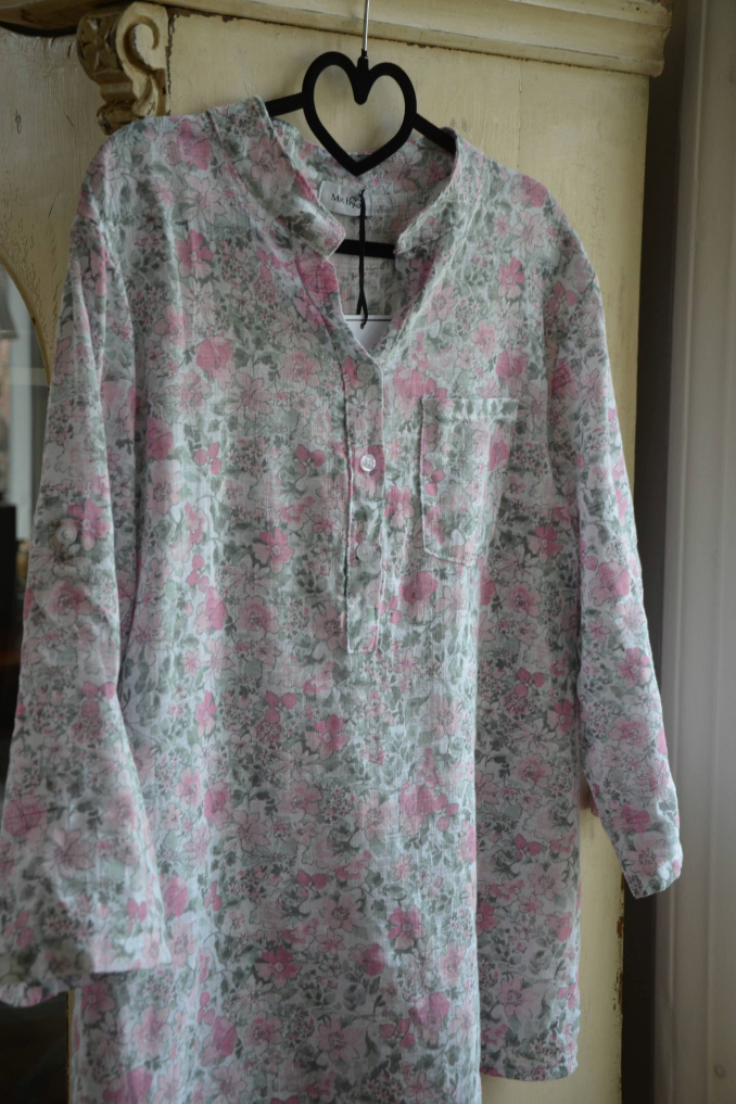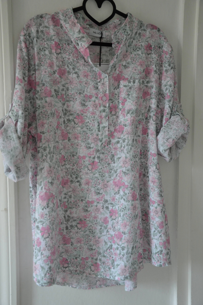 Sandra blusen här i ett fint rosa blommigt tryck!