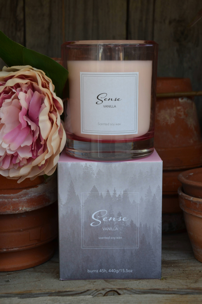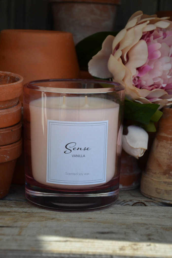Doftljus "Vanilla" kommer i rosa glaskopp och i snygg presentförpackning!