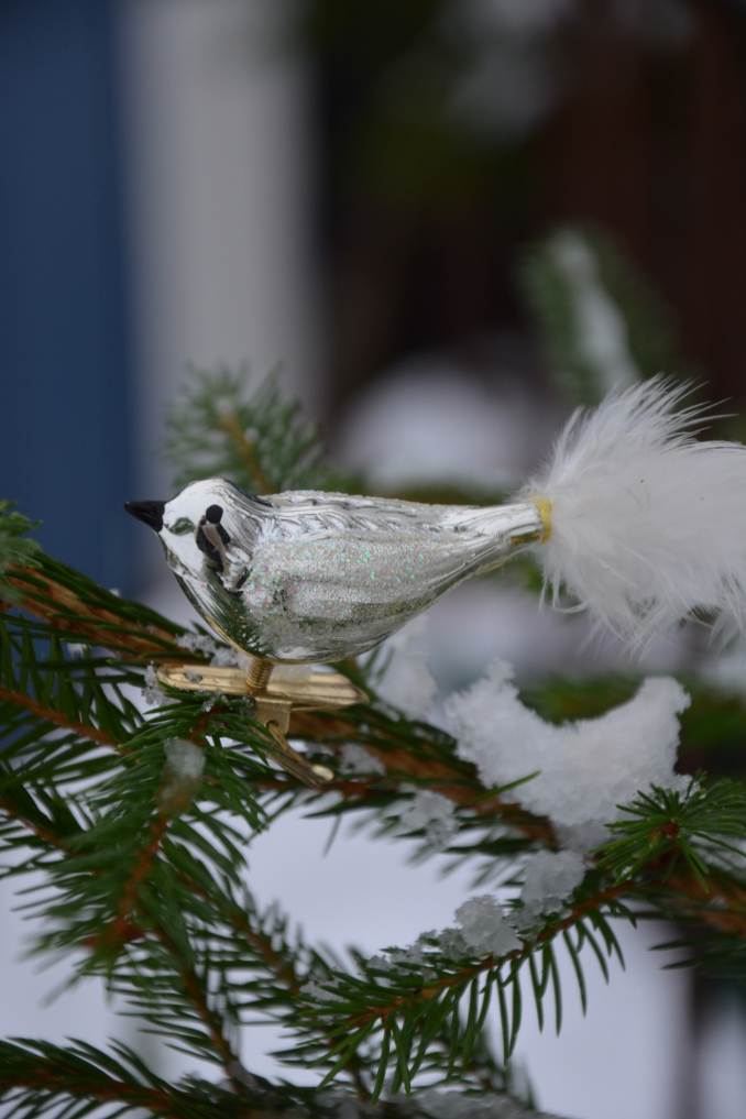 Fågel med klämma att fästa i granen eller i andra kvistar