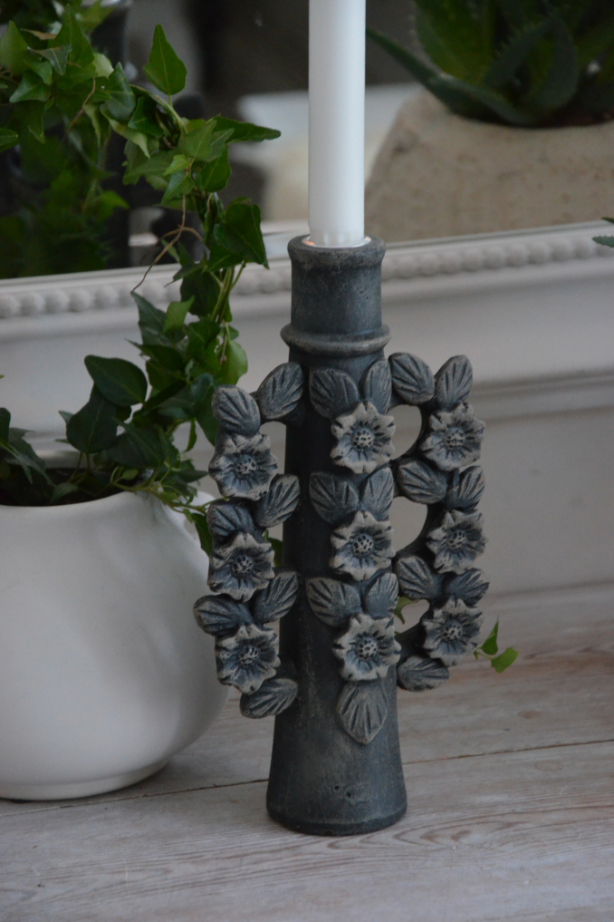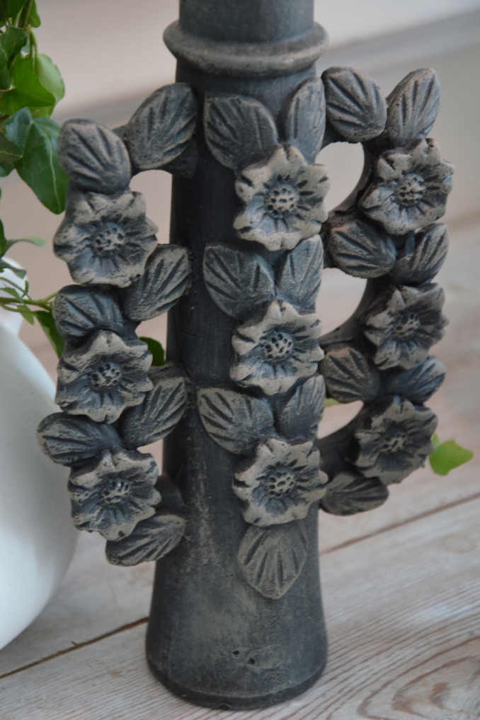 Läcker ljusstake i rustik stil med fin blomsterdekor