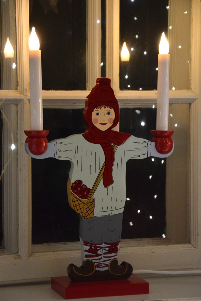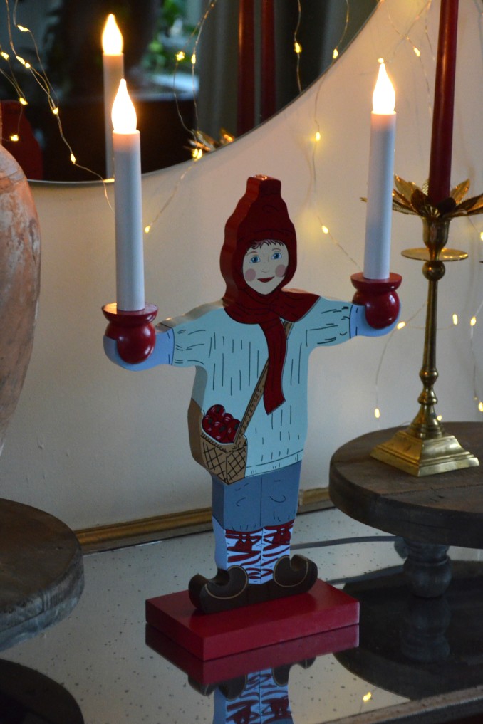 Dekorativ adventsljusstake i trä som i stil och design är inspirerad av Carl Larsson.