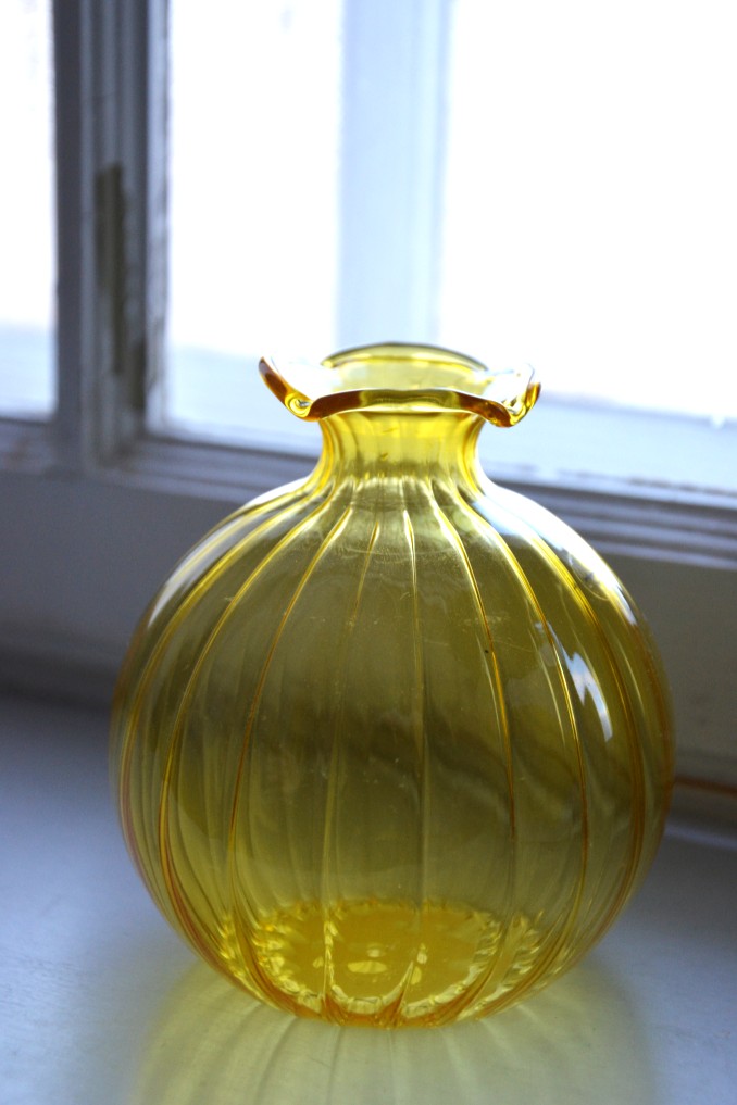 Fin gul vas som blir en färgklick och som är perfekt till en liten blomma man vill lyfta fram!